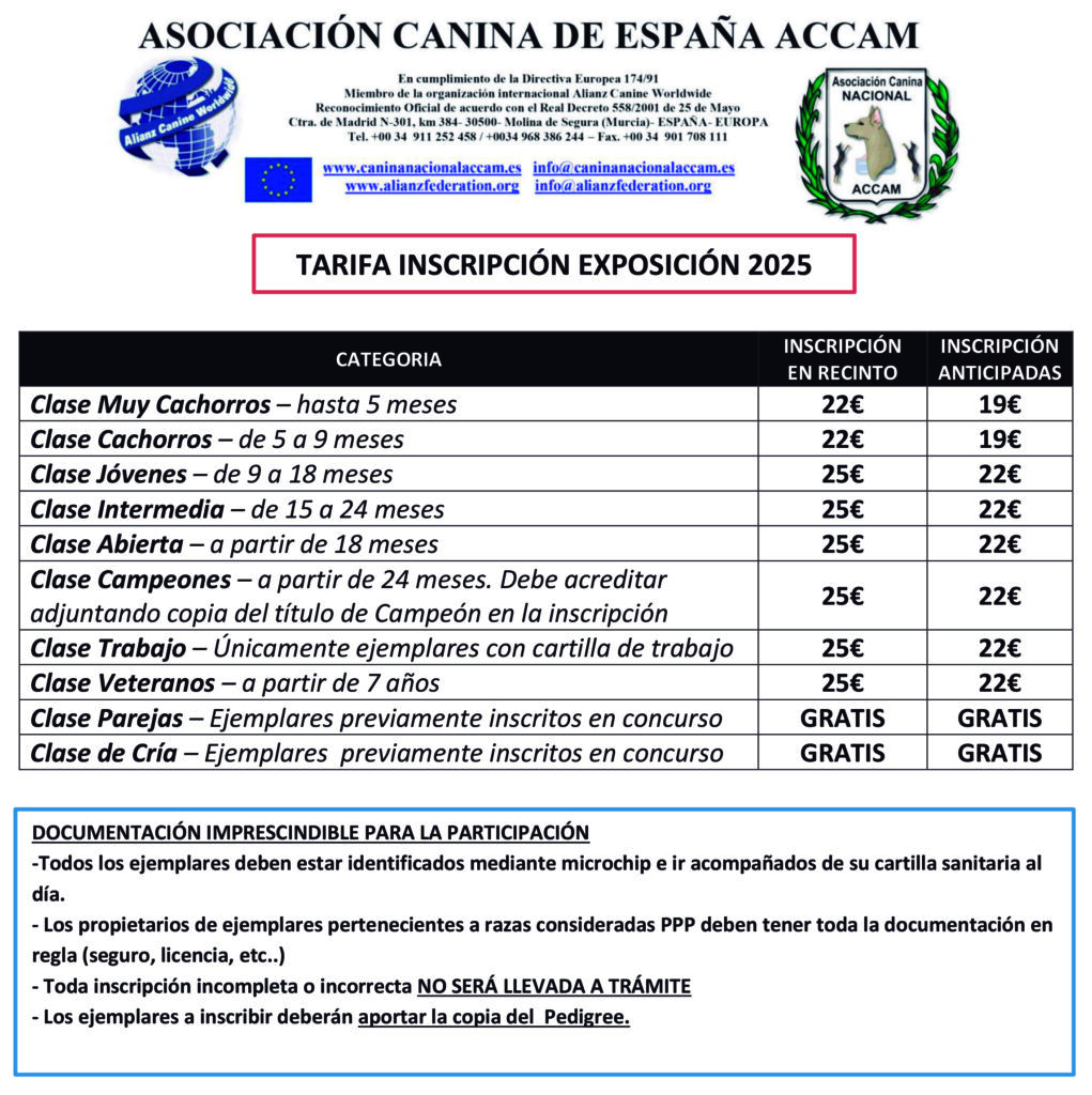 Asociación Canina Nacional de España ACCAM Única organización en España miembro de Alianz Canine Worldwide.